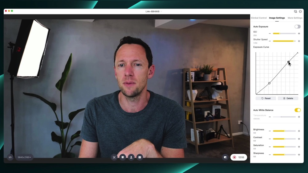 Inside the exposure curve tool, you can create points on the curve as if you were doing color correction inside video editing software. This is insane – we’ve never seen anything like this for webcam control.