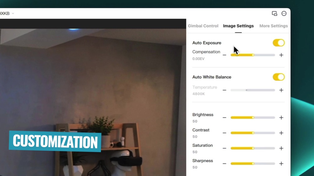 Once you’re inside the software, you’ll notice three different tabs: Gimbal Control, Image Settings and More Settings. Let’s check them out.
