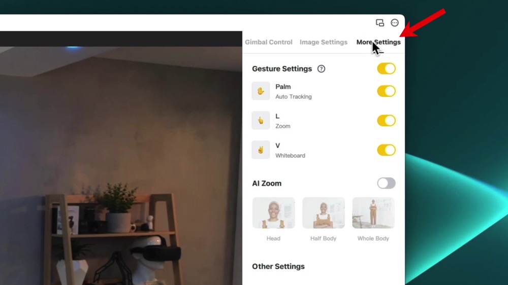 There’s some really cool stuff in the More Settings tab as well. This is where you’ll find the gesture tracking settings.