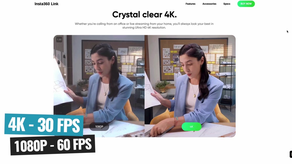 The Insta360 Links is capable of 4K 30 frames per second. It will also do 1080p at 60 frames per second.