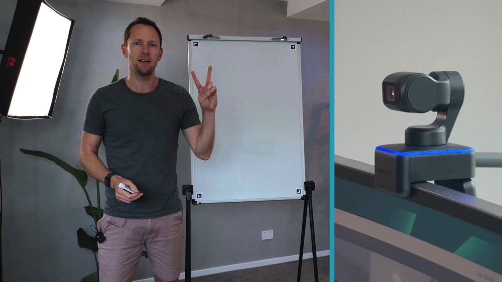 It’s a 4K webcam with AI-powered tracking and a 3-axis gimbal. There’s gesture controls meaning you can use hand gestures to trigger different features. It has built-in dual noise canceling microphones. Plus it works in portrait mode as well – making it great for vertical video content too!